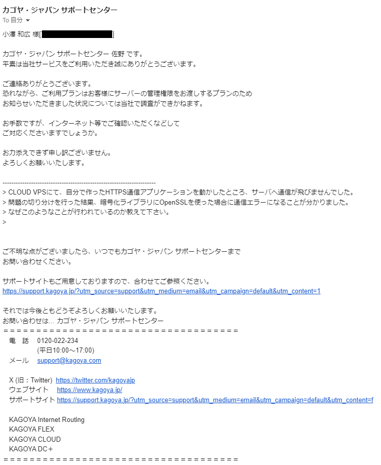 あれやこれややっていたので追記が遅れたのだが、実は2日後には以下の回答が来ていた。
